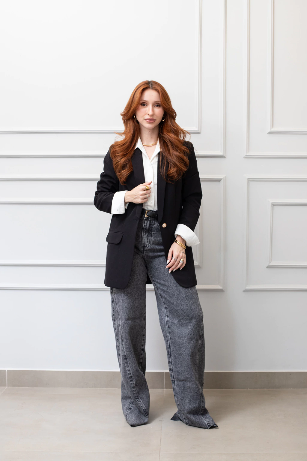 O destaque fica por conta do botão dourado, que adiciona um charme sutil e sofisticado, completando o acabamento forrado que garante conforto e qualidade. Ideal para ocasiões formais ou para elevar looks do dia a dia, o Blazer Celine é uma escolha atemporal que combina com diferentes estilos.